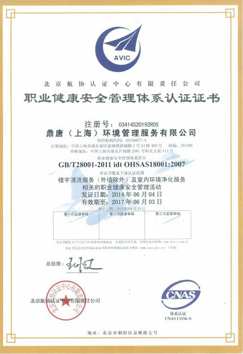 中华人民共和国清洁消毒杀菌服务企业资质证书