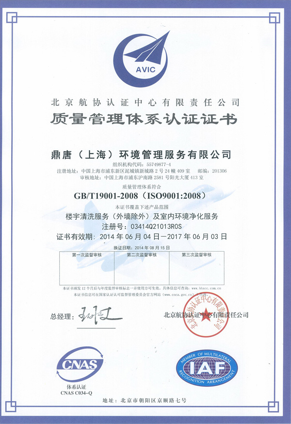 质量管理体系认证证书